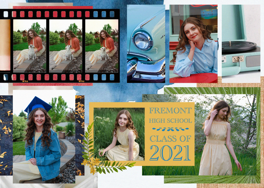 Photos taken in Weber County, Utah. Graduation photos and announcement designed in May 2021. Formatted for printing on 4×6 matte finish card stock.